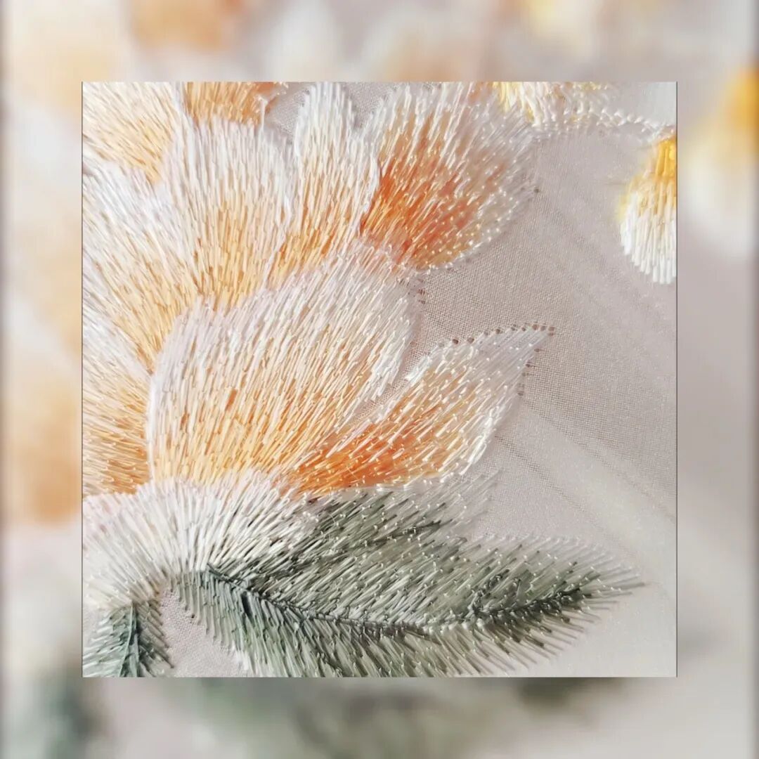 用现代纱线结合机绣工艺,打造蚕丝手绣质感,
